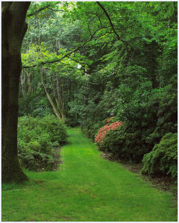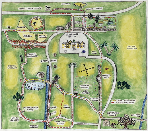 Achamore花園(圖2,圖3)有許多品種的杜鵑花,也有許多混種植物,當中許多都是Horlick爵士所創造出來的。在四月初和六月中旬之間隨時散步在花園中是個神奇的經驗,五月則是開花高峰期,雖然Don在過去十年持續地都在溫室( Achamore屋的旁邊)種植熱帶蘭花,但他也有發現自己樂於製作花精,花是來自家門口的那些驚人美妙花園中的花。