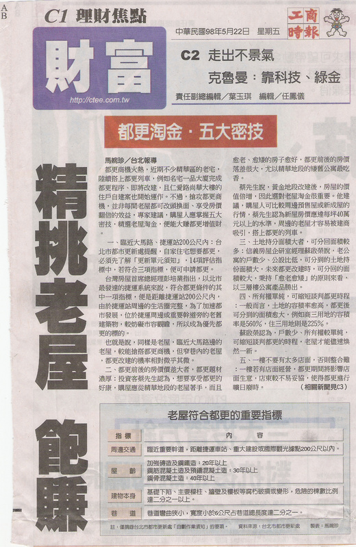 轉載--危樓都更 平民屋主變富翁〔經濟日報╱記者梁任瑋/台北報導〕
