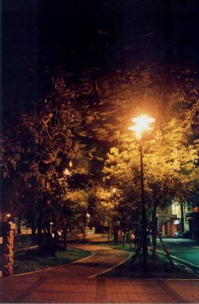 泛黃的街燈從繁盛的枝葉間冒出頭來,像是個英挺的衛士,溫柔地守衛著每一個流連的旅者。