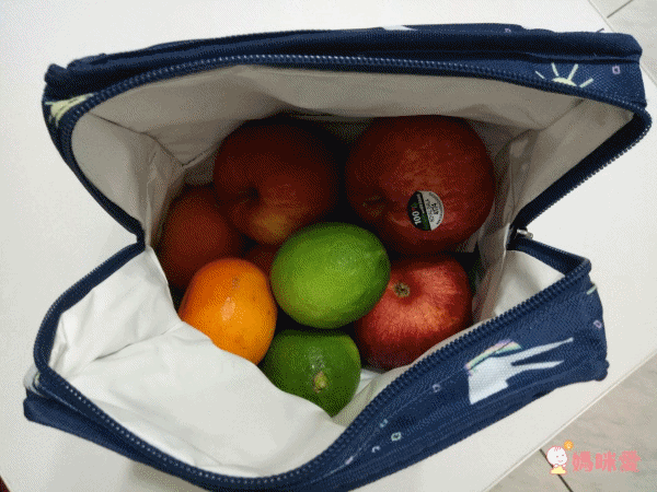 折疊起來的冷藏袋看起來小小的,但容量其實非常大,可以放保鮮盒+水壺,或是一堆水果,收納很足夠。