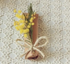 將裝飾小花固定粘貼在包裝紙尚,用麻繩打個蝴蝶結,ok,好啦!