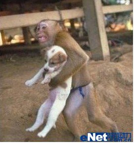 有的時候動物比人有情…… 日本福島核電站爆炸現場,一隻可愛的猴子抱著一隻狗狗