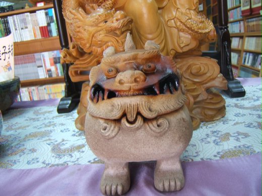 大家好! 我是可愛的小石獅,因為肚子可以點環香,就變得一臉黑黑的關公獅了。