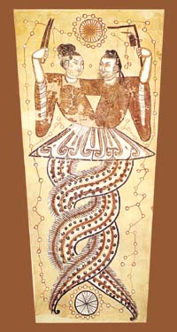 我們仔細考察太皞與少皞之間的關係時。就發現其中許多事實都是混淆不清的。如漢畫像磚上伏羲頭上冠以玄鳥的形象。可是事實上以鳥名官的卻是少皞。《左傳。昭公十七年》: