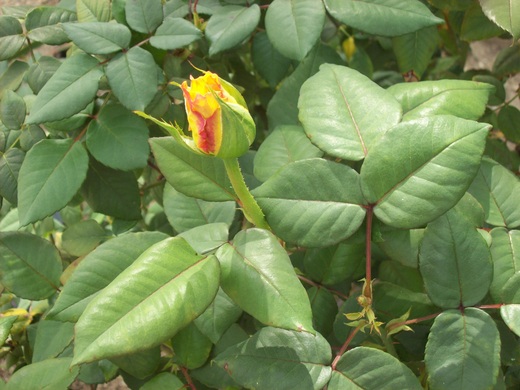 院子驚見一朵剛含苞待放的玫瑰﹐好心地把她剪下﹐插入花瓶裡﹐左看右看都喜歡﹐是春天帶來的信息﹐希望與你共度今年一整年。