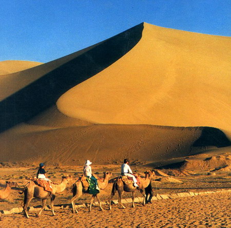 電腦上呈現的圖片都是黃塵漫漫的沙漠,駱駝隊商在紅浸的夕陽餘暉下趕路,方圓百里人跡寥寥,這種畫面確實很難說服我公公:〔噢!不要擔心我的老祖宗,其實敦煌是座文化古都來著。〕更何況,我不是在敦煌被繁衍出來的啊!