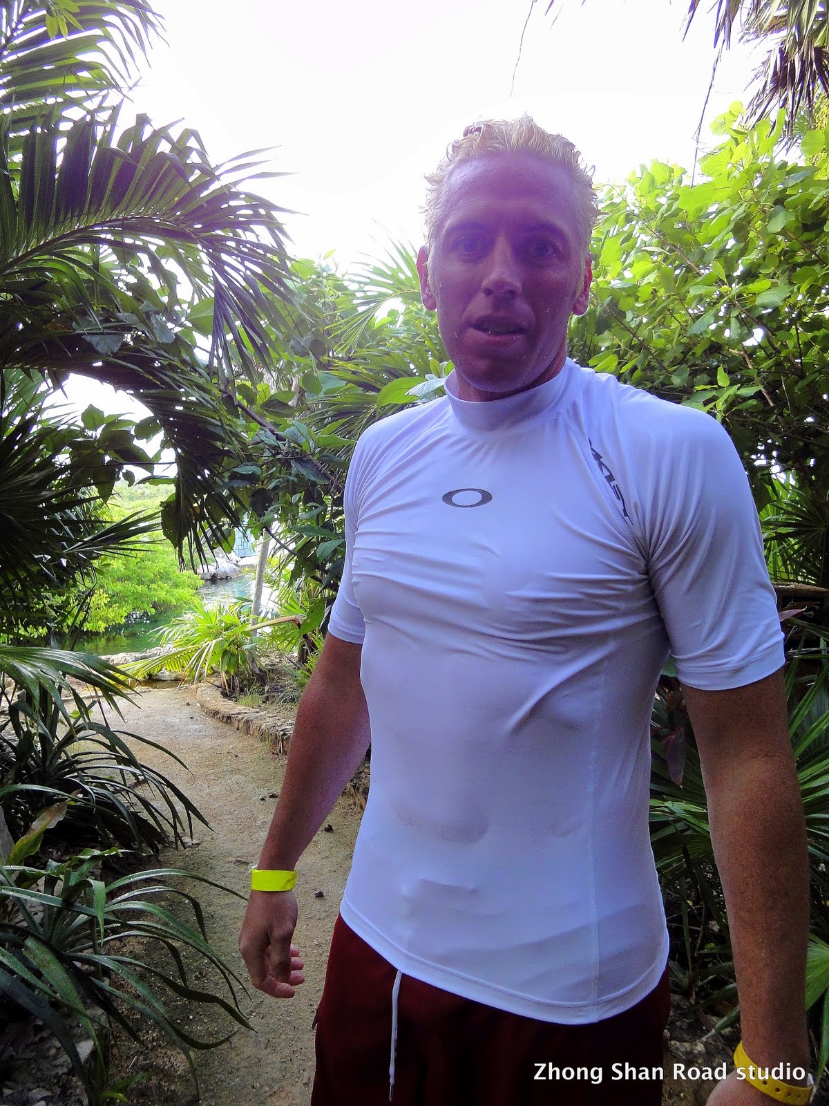 (老公浮潛上岸之後一幅肚子餓的模樣)