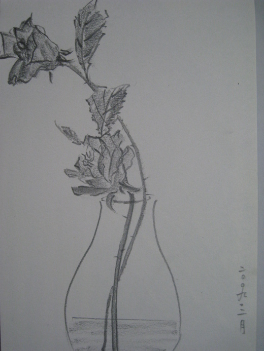 這些曾在田間曲身低垂的花,被花農淘汰的花;在瓶中顯得很美、很適合寫生。許多時候,同樣的東西擺放在不同的位置就會顯出它不同的功用來。你覺得呢?