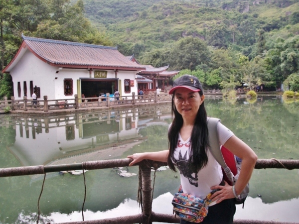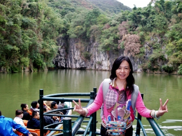 2010/9/24: 一早六點就起床, 好一個陰天啊! 這個散客團有二十來人, 就只有我單操一個人, 早上先去龍宮, 就是一個大溶洞, 得先爬點山, 到達天池乘船遊覽, 龍宮里的景致, 是三分模樣七分想像,這里的溶洞風景没有桂林的豊富精彩, 但我很喜歡船隻閒閒地在洞里穿梭的感覺. 這里還有個景叫旋塘, 就是池塘經地底氣流產生的旋渦效應, 可惜水量小没有漩起來, 沿途風景綠意盎然, 貴州的山多為單一圓峰狀, 所以看上去就像遠遠長著一顆又一顆超大的綠饅頭(可能是抺茶口味唷)!