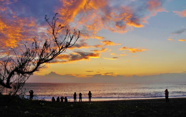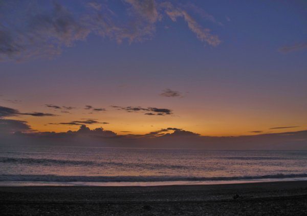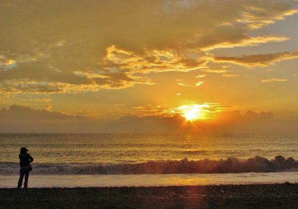 ※6:00從左岸民宿出來步行三分鍾就到海邊,初現的朝霞將天空襯得藍淨淨,等待黎明的心情,正如海浪一波波不平靜.