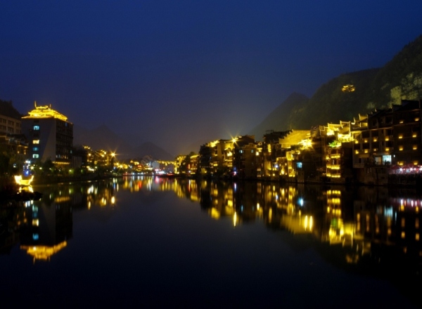 . 七點多了, 那天色是暗了點, 但甲秀樓的灯卻晚晚點起, 我發現她和我印象中的亱景不太一样, 並没有很喜歡, 分析下來原來是那些大樓燈飾未開, 甲秀樓邊也無紅燈籠成列, 無妨環保嘛! 走到橋下拍河岸店家的亱景, 很有歐洲風情, 倒是更為喜歡呢! . 晚上九點多才回到酒店附近吃了碗刀削面, 是用鋼碗裝面的唷, 挺好吃的, 明天想去照梯田, 今天路上問了几個人都說没聽過高坡, 唉! 明天看著辦吧!