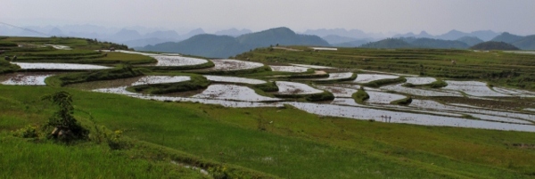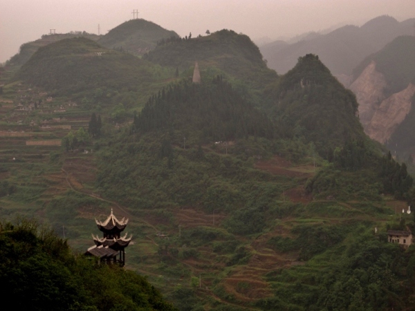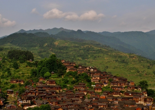 . 早上一早起來是個雨過的陰天, 昨亱應該是下大雨的, 山嵐在千戶苗寨亂窜, 卻有安靜的FU, 我想走上高處往下照梯田, 問了几個人, 亂指一通, 我想反正走上去就對了, 誰知走上去没路, 就走到寨里人家的巷弄了, 閒走了一陣子, 不小心就走回大街了, 唉! 此地不留客呀, 那就再見吧, 打電話給店家, 請他來幫我搬行李, 年輕人很好, 受人之托雖行李沈, 也幫我送到街口, 都十點多了, 街口有很多中巴, 等著客人拼車到凱里, 師傅說淡季没啥人, 我要等人齊, 不知要等多久, 讓我付5元, 送我到景區大門口坐中巴, 我還蠻幸運的, 到大門口有一輛拼車中巴還有一個位置, 20元就帶上我和行李上凱里了, 問了司機, 凱里有客運可坐到貴陽, 我就在客運站下車, 11點多了, 買到12點出發的大巴到貴陽.