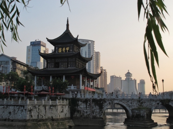 . 甲秀樓是貴陽市的地標, 很有特色的古建築, 和現代設計感十足的高樓, 一起照看著南明河, 河岸邊上多是特色咖啡館茶館, 就連甲秀樓也提供遊客品茶呢! 六點多太陽還曬得起勁, 河邊閒逛, 又遇到一位馿友, 也是來照亱景, 她是南宁人, 我們只聊了會, 就各自取景, 她莫約是退休人士, 按我目測應有五十多多的歲數, 現在越來越多一個人旅行的馿友了, 一個人的旅行其實不寂寞.