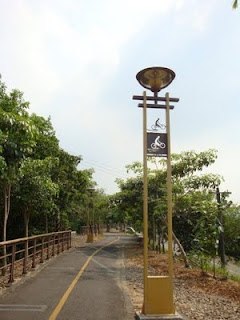 后豐車道很快就接上東豐車道,一路上到處仍是綠油油的,除了車道二旁的綠化植物以外,基本上這車道原本是舊鄉間火車道改的,車道的二旁穿越許多農田、果園、小溪、小工廠和農社,車道二旁的休息設施蓋得很完善,路邊還常常突然出現許多色彩繽紛的野花,騎起來真的很舒服。雖然一路上騎得很愉快,也不停的停下來拍照和欣賞風景,但騎到石岡水庫時,覺得有點累了,想到還要原路騎回去,得留點體力才行,大太陽底下騎車果然是比較辛苦,於是在石岡水壩短暫停留後便決定往回頭騎。
