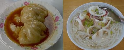 下個拜訪的地點是如今在很多地方都有連鎖店的"度小月擔仔麵",坐在古色古香矮矮的板凳椅子上,我吃了一碗只有幾口的擔仔麵。之後騎到了在一個雜誌上看到的"葉家小卷米粉湯",這個小吃比較特別,在其它的地方沒有看過。米粉是很粗的那種,但並沒有什麼嚼勁;湯頭較一般的米粉湯也沒有太大差別,但有很多川燙小卷,小卷新鮮且味道還不錯,但米粉和湯頭並沒有令人驚喜。