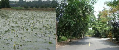 竹門芒果樹綠色隧道”雖然是綠意盎然,但因為樹與樹的距離較大,遮陰的較果並沒有很好,曬得很。自行車道雖都有指標,但一進入蓮園區,穿梭在蓮田、農田、社區住宅區間,就很容易迷路。這裡所謂的自行車道就是鄉間、農家道路,雖然景色美麗但一來因為太陽實在太曬,另一方面因為路有點難找,結果我很不爭氣的和小折都在車子裡躲太陽。非觀光時節來逛蓮園,開車停車其實都超級方便,太陽底下躲在車裡,在空無一人的諾大幽靜的蓮花田園裡,開車車窗漫逛的感覺很浪漫也很愉快。