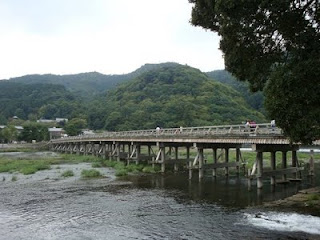 第二天乘坐【龜岡羅曼蒂克小火車】,由龜岡車站出發沿著景色宜人的保津川峽到嵐山車站,是一段很有意思、風景美麗的鐵道之旅。日本人稱這段觀光火車為【羅曼蒂克鐵路】,火車沿著保津峽和保津川而走,有山谷之間的綠意和安祥,也有溪流潺潺的清涼,沿路的楓樹如果也紅了,這段車程25分鐘的火車之旅就更美不勝收了。結束火車行程,沿著嵐山走到渡月橋,順道小鎮風光相當悠閒。日本有企業化經營的人力車,全由年輕力壯的年輕人來拉,在受歡迎的景點總會看到。這人力車純人力拉動,無論上坡、下坡都一樣,車夫除了彬彬有禮以外,還會一邊介紹沿途風景特色,配合拍照也是超有熱情的,四十分鐘的路程收費約三千日圓,感覺很值得。