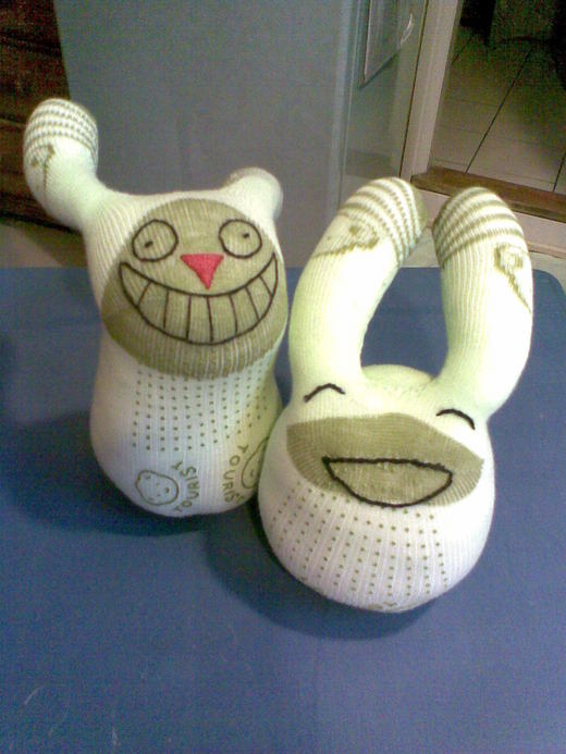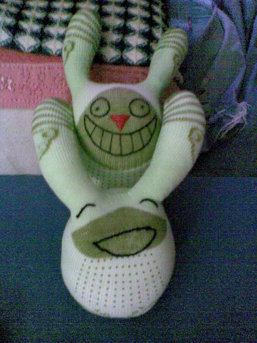 第二支襪子娃娃做好了,失手剪錯洞,看起來不太一樣.