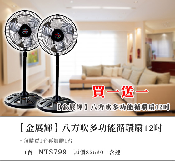 品名:【金展輝】八方吹多功能循環扇-12吋