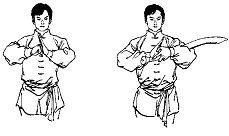 抱拳禮:並步站立,左掌右拳在胸前相抱(左指根線與右拳棱相齊),高與胸齊,拳、掌與胸間距離為20-30釐米。