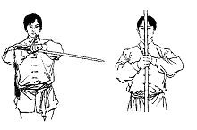 持劍禮:並步站立,左手持劍,屈臂抬起使劍身貼前臂