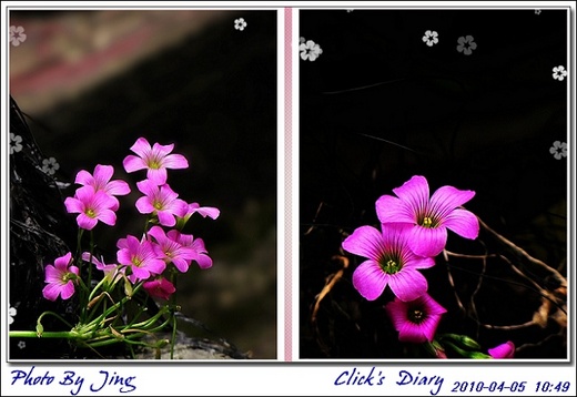 屋旁的酢醬草花開的紅通通,紅的發紫