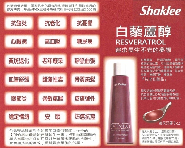 VIVIX 可以修護細胞 防止DNA的損壞 對心血管很好! 幫助肌膚排除毒素 可以減除疲勞 提供能量~