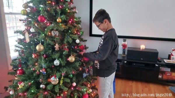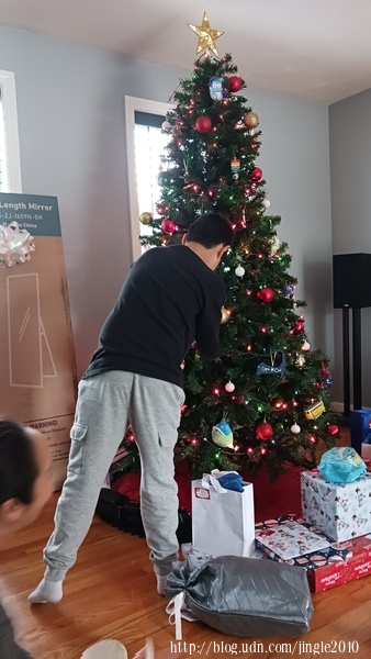 我打開禮物之後, 小孫就把掛飾掛在聖誕樹上了, 以後每年都會掛在樹上↓↓