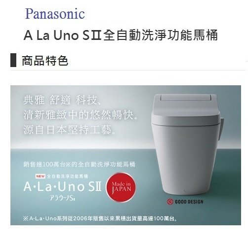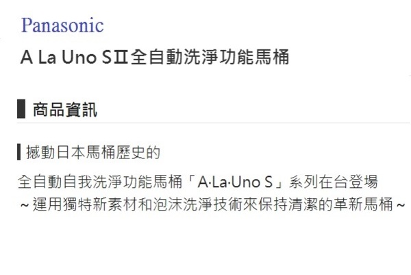 Panasonic A La Uno SⅡ全自動洗淨功能馬桶
