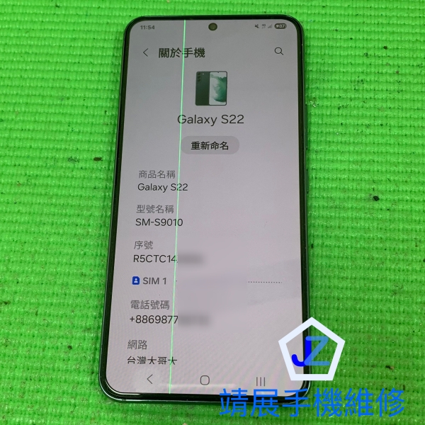 這部三星 Samsung Galaxy S22 手機螢幕出現了綠色線條, 據機主自已的說法他是在使用手機追劇時,手機的螢幕突然的出現了這條綠色線條,由於使用手機時螢幕一直存在這個綠色線條讓他實在無法接...