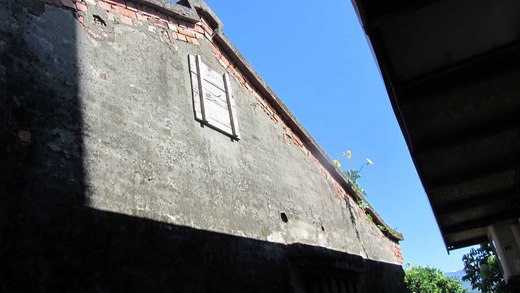看見爬上老屋牆垣的絲瓜花,在陽光照耀下飄動。