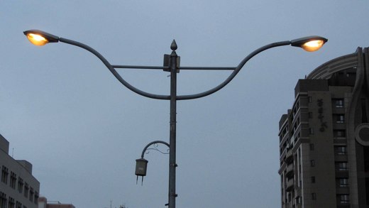 [照片為民權西路捷運站附近的路燈。靜ㄚ宜攝於