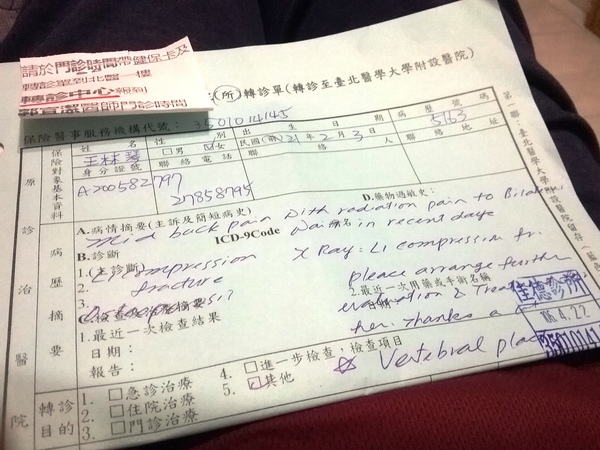 2017.04.28 上午09:50 換藥 (有三個手術傷口)
