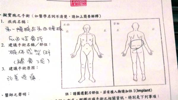 椎體成型術 (補骨泥)需自費70,000元