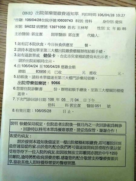 出院結帳費用 83,956元