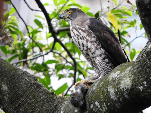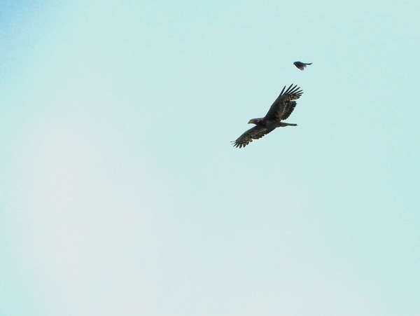 大冠鷲與大捲尾,兩隻大字輩的在爭鬥