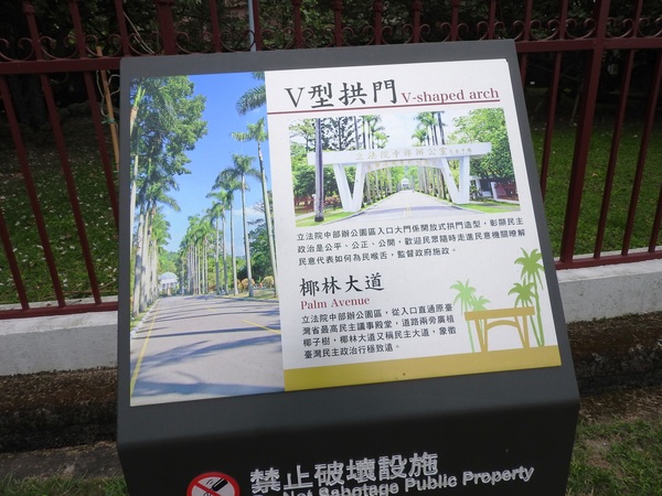 園區見證臺灣地方自治的體制演變,擁有獨一無二的歷史意義,是國內外人士了解臺灣民主發展的重要文化景觀,為完整保存園區文化風貌,全區劃定為古蹟保存區。由園區入口椰林大道進入後,會途經噴水池、水池、銅像、議員會館、朝琴紀念館,以及屋頂圓弧造型的議事大樓等景觀建築,處處綠美化庭園造景,漫步其中令人心曠神怡,後山還有典雅的梅亭,假日是民眾休閒運動的好去處。