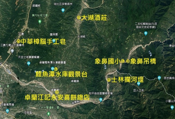 《錦秀旅行社小蔡旅遊》-苗栗泰安象鼻部落、士林攔河堰、卓蘭江記永安喜餅店、鯉魚潭水庫觀景台、大湖酒莊、羅福星紀念館一日遊