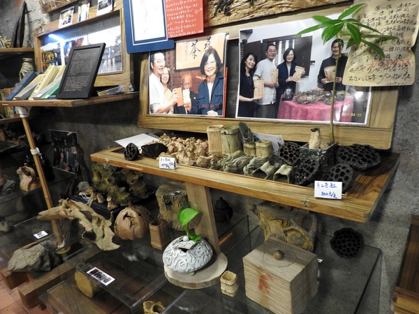 滿屋的藝術品不賣,那這家店到底在賣什麼?只見架子上有不到十包標了價的關西野茶,原來整間店只賣賴哥親手種的茶葉。這些茶葉可說是天生天養,堅持以不施肥、不除草、不管它的方式種植,放養的野茶雖然葉片較小,然而淺嚐一口卻有股清新自然的茶香,順口回甘。下次來到這裡,別忘了請賴哥用他親手做的茶壺,為您斟上一杯自種的野茶,除了品嚐茶葉的甘醇清香,更可感受賴哥的熱情好客。