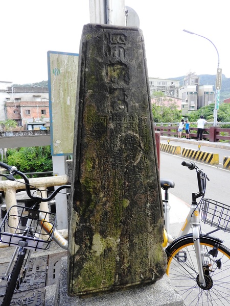 從深坑街尾向中正橋(舊名深坑橋)走,於深坑區衛生所旁的橋頭右側有一方七十多年歷史的古碑,名曰「深坑橋碑」,碑文記載了當年兩岸渡船過河的經過,更說明日治時代建橋的來龍去脈。正面之碑文部份因風化剝落而難以辨識,尋繹其大意如下:深坑與阿柔坑間,往昔靠渡船頭聯絡兩岸交通,十分不便利,官民於是募款數千日圓以興建深坑吊橋,於大正十四年(1925年)興建完成,由深坑小學校長川島濤江為文以誌其盛。