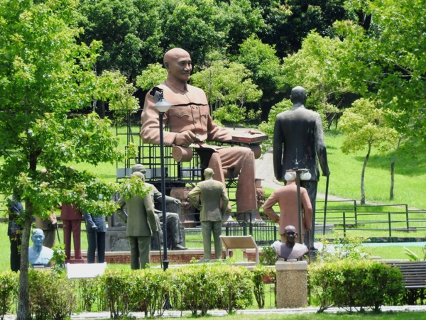 全國最大蔣介石銅像、原置於高雄市中正文化中心,2007年扣除碎片外被拆卸為117塊,歷經藝術家郭少宗規畫、林昭慶執行重組,雕塑重現公園,名為「傷痕與再生」。