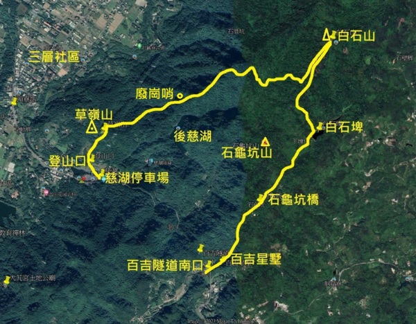 附錄 : 慈湖登草嶺山、白石山下白石埤出百吉隧道南口路線圖