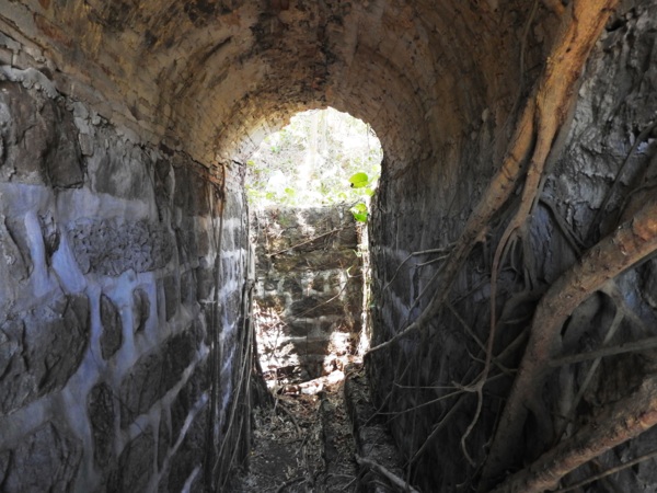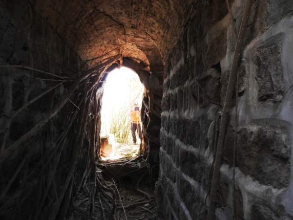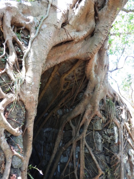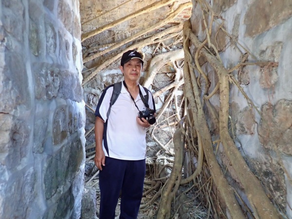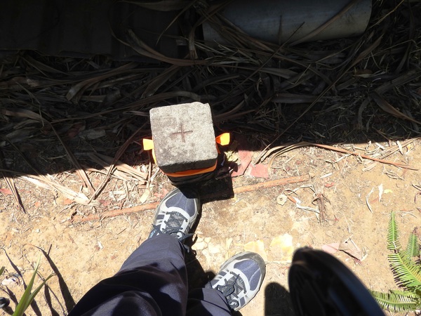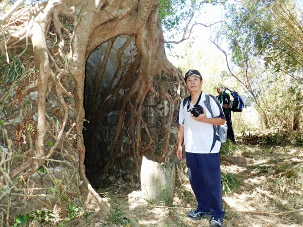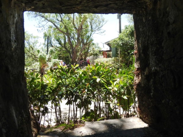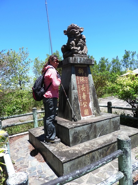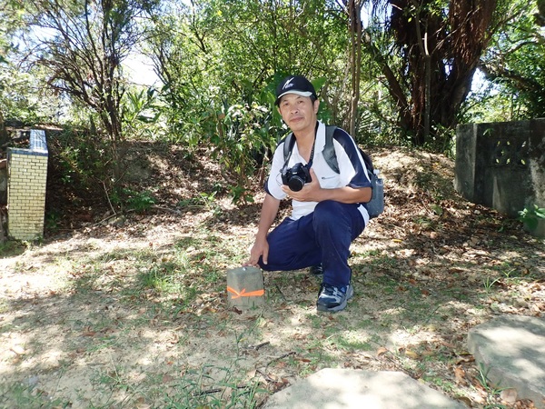 11:42 獅球嶺砲台碉堡上拍主砲台山三角點,碉堡上有三顆基石,而小草立的喉鎖島門碑已被移除