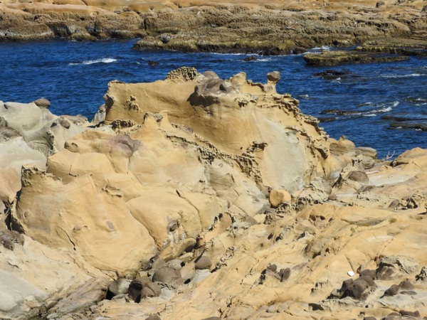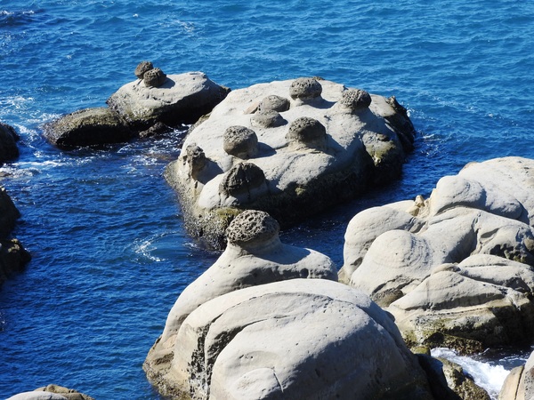 ● 萬人堆:萬人堆位於和平島北端的岩岸,因常年受海蝕風化而形成許多奇石,貌似浴池、花瓣、梳妝台等。分佈散落四周的石頭,又如同人頭一般,因此稱為萬人堆,景觀特異。