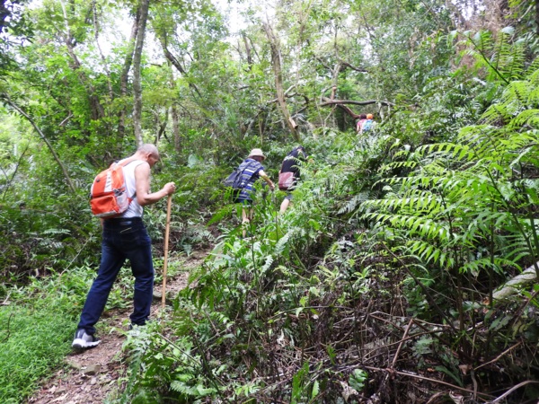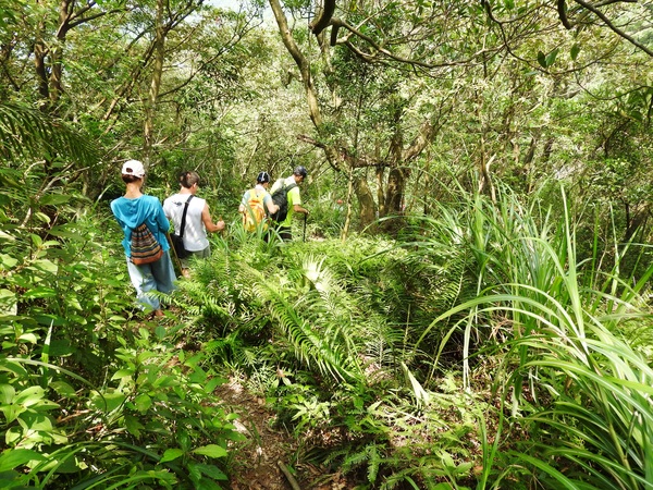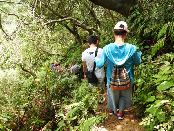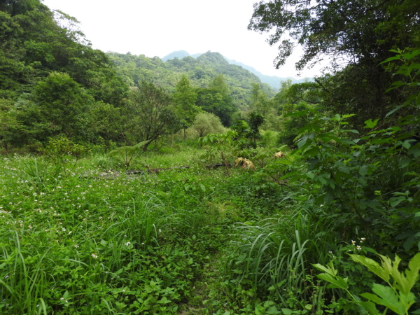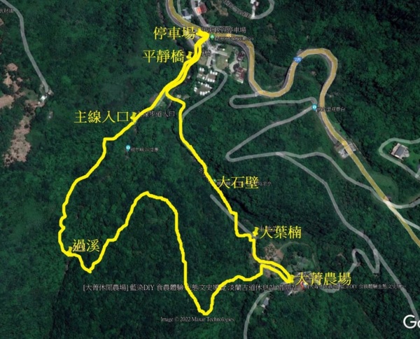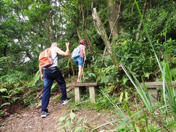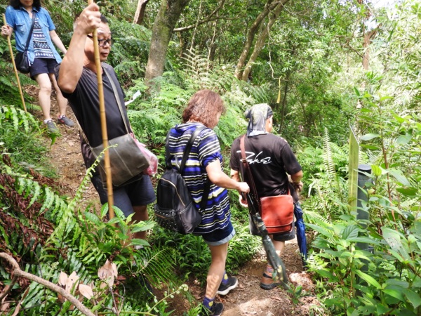 紅線步道為原始山徑,時而樹林時而竹林,鳥叫蟲鳴的林蔭間,可眺望大菁農場。
