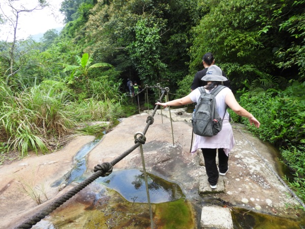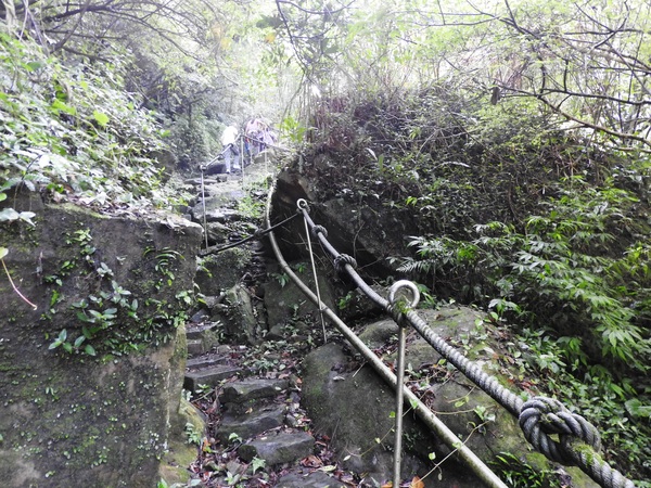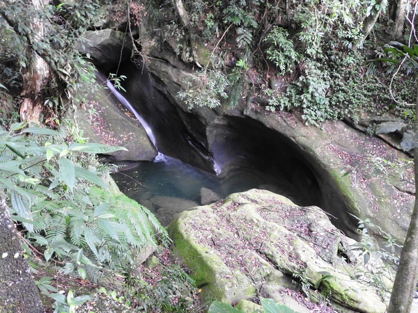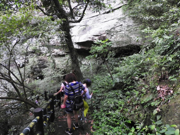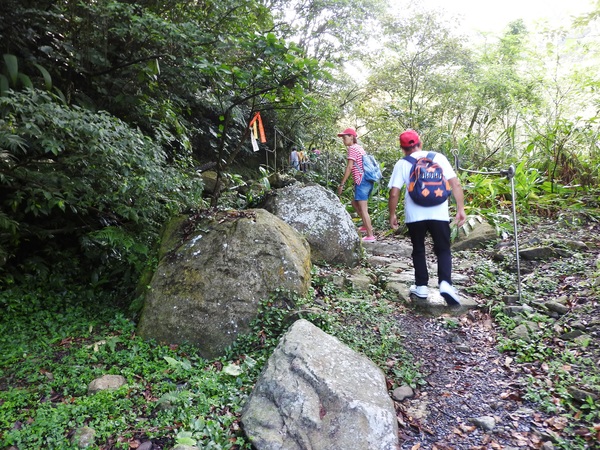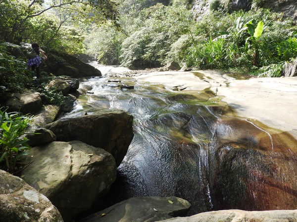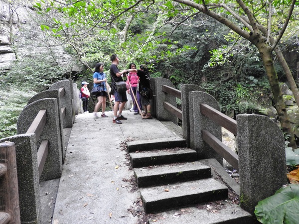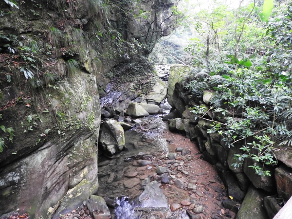 黃色步道最短,高度有些落差,以石塊砌成,有古樸的風味,沿途可見知名的滑瀑、峽谷、岩洞、石床等地形,麻雀雖小五臟俱全。