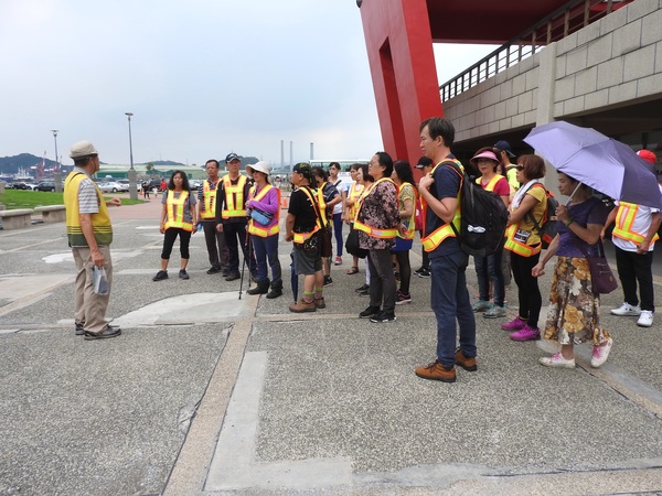 領隊去申請管制區的導覽服務,每梯次限定20名,這次只搶到15個名額,我只能在管制區外旁聽 (免費定時導覽解說服務時間:假日10:30、14:30。僅提供散客,於遊客中心報名,上限20人)