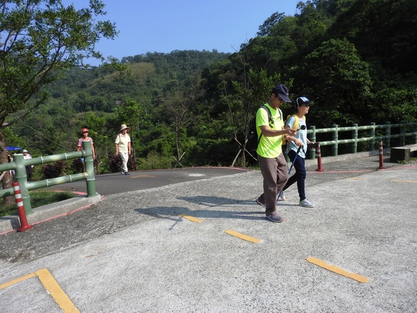 藍、紅、黃三線步道互相串連,藍線步道屬大眾路線,沿途多鋪設水泥路面,走來輕鬆,小橋橫亙溪谷,水聲潺潺,蝶兒翩翩飛舞,若有雲霧小語,則更加浪漫。