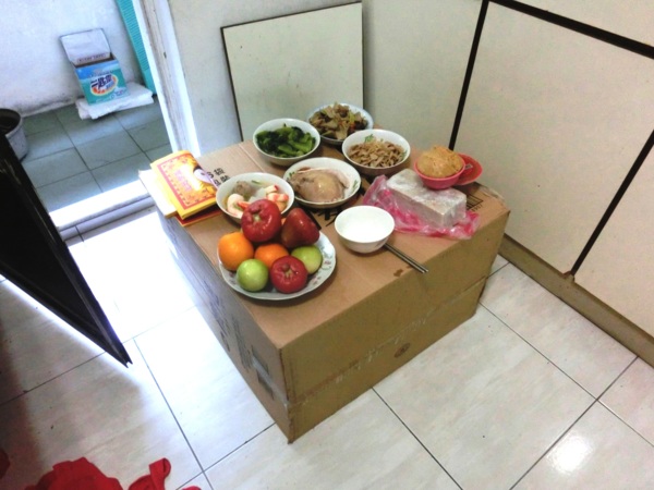 (一)用低矮的桌子擺上供品,放在大門入門處。