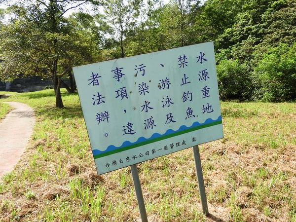 09:17 西勢水庫大門口,鐵門深鎖,後方可看到「基隆水道貯水池記念碑」